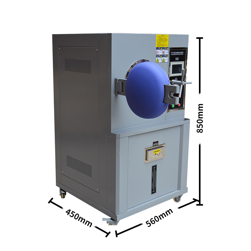 Description:The PCT Test Chamber is designed for high-temperature, high-humidity, and pressurized testing of electronic components, materials, and magnetic materials. It features a temperature range of +100°C to +135°C, pressure range of 0.50 to 2.00 kg/cm², and saturated steam humidity control. Constructed with an SUS#316 stainless steel inner tank and SUS#304 stainless steel outer housing, it offers reliable durability. Key features include an imported solenoid valve system, independent steam generator to prevent direct impact on test samples, enhanced door locking mechanism, and multi-level safety protections. Equipped with a microcomputer controller and LED display, it is widely used in electronics, component manufacturing, and material testing industries for product design validation, quality assurance, and inspection.